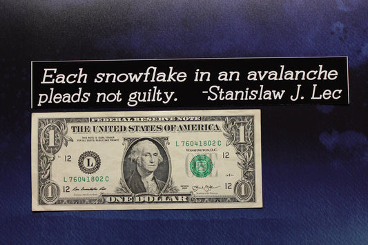 Each snowflake in an avalanche pleads not guilty... Stanislaw J. Lec vinyl bumper sticker bike car laptop guitar