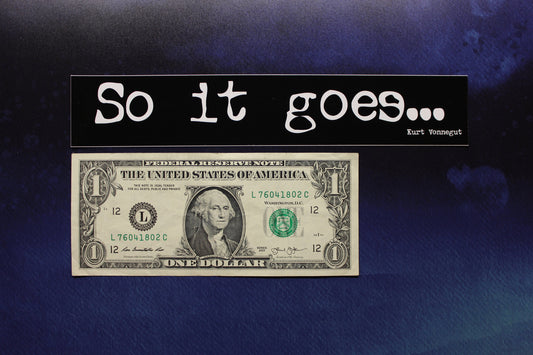 So it goes... Kurt Vonnegut vinyl sticker laptop car bumper bike bookworm gift writer reader
