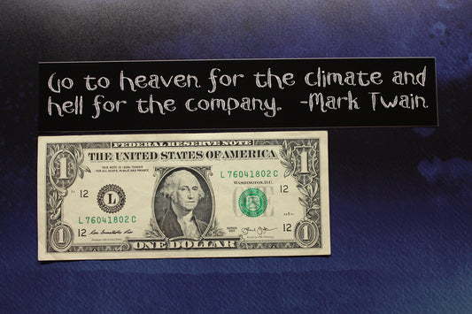 Mark Twain Go to heaven for the climate and hell for the company Vinyl Bumper Sticker car bike laptop guitar