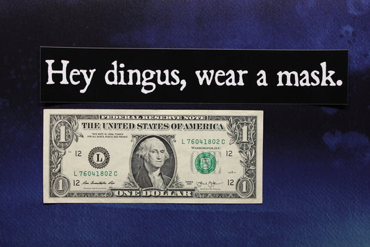 Hey Dingus Wear A Mask slim vinyl bumper sticker car bike helmet