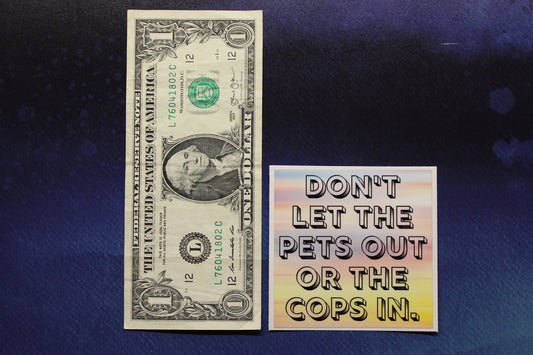 Don't Let The Pets Out or the Cops In Vinyl Sticker