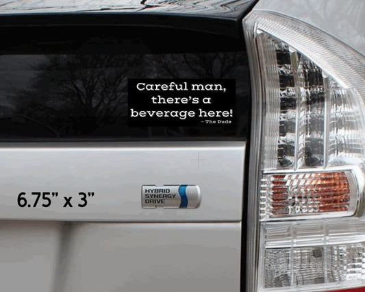 Big Lebowski Vinyl Sticker Careful Man There's a Beverage Here