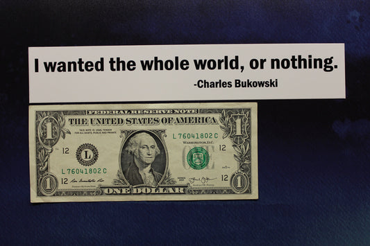 I wanted the whole world or nothing Charles Bukowski Post Office vinyl bumper sticker car bike laptop guitar