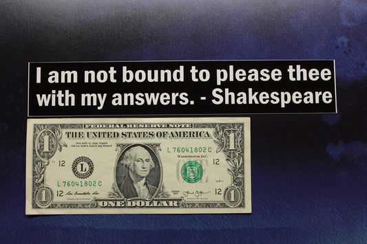 Shakespeare Vinyl Bumper Sticker I am not bound to please thee car bike laptop guitar