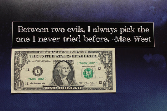 Mae West Between Two Evils Slim Vinyl Bumper Sticker Car Bike Guitar Laptop Helmet