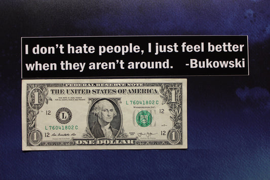 Bukowski I don't hate people, I just feel better when they aren't around Vinyl Bumper Sticker car bike guitar laptop