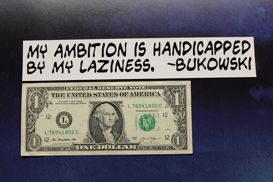 Charles Bukowski Sticker My ambition is handicapped by my laziness vinyl bumper car bike laptop guitar
