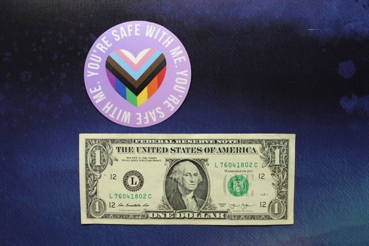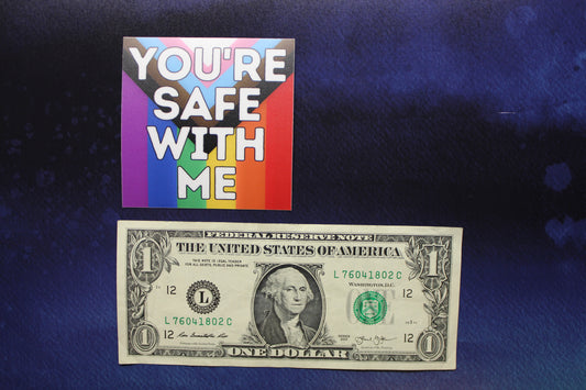You're Safe With Me Pride Flag Button Magnet or Bottle Opener