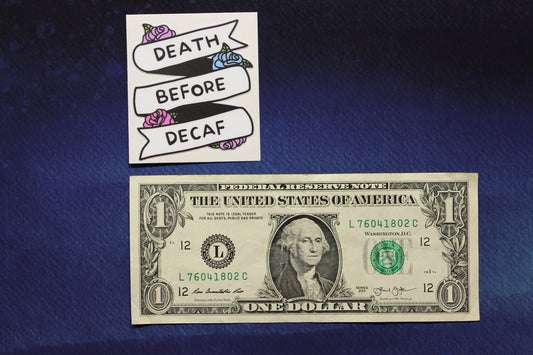Death Before Decaf Small Vinyl Sticker