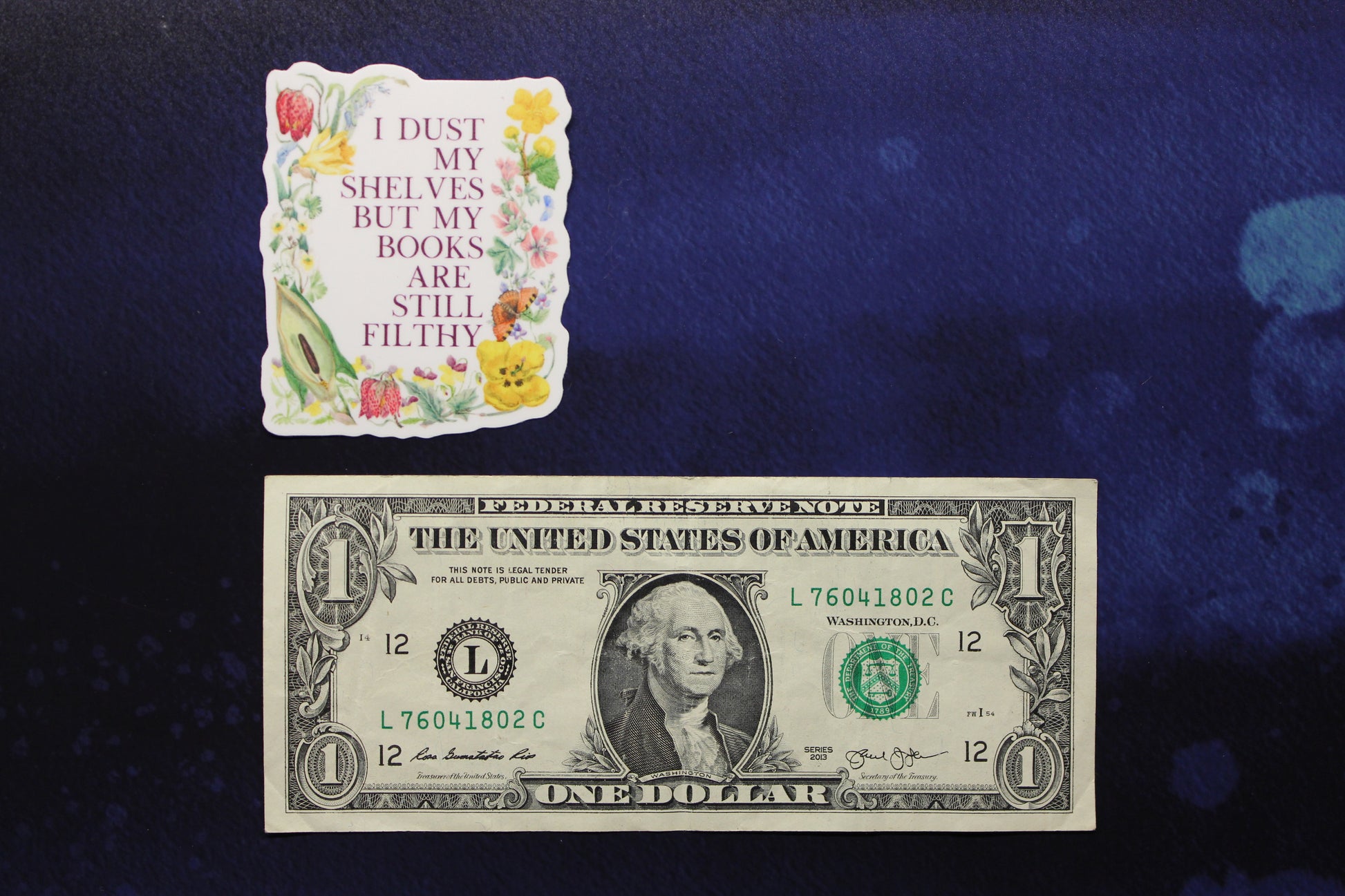 Please note that the colors may vary depending on your monitor settings. The dollar bill in the photos is only for sizing reference, and though I love my customers the listing is for the sticker only, and excludes the dollar :)