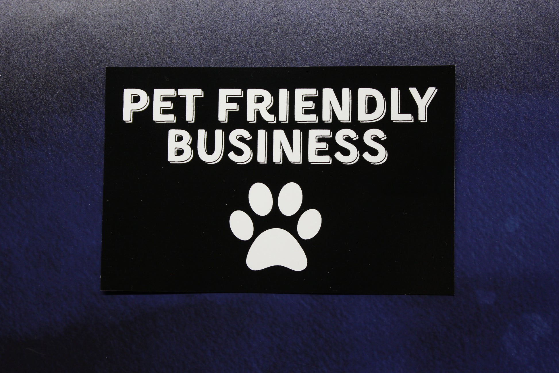 This black and white sticker is 4 1/8" wide x 2 5/8" tall